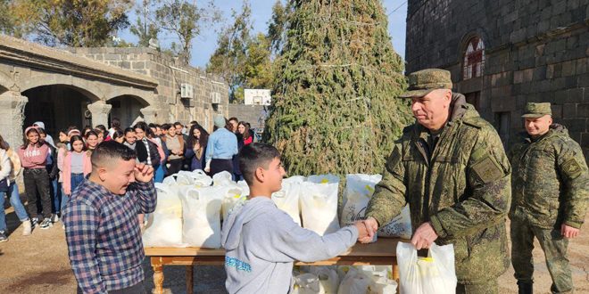 ووزع العسكريون الروس بحضور نائب رئيس المنطقة العسكرية المركزية، الأميرال كوليت فاديم فرانتسيفيتش حوالي 70 هدية للأطفال بهذه المناسبة.
