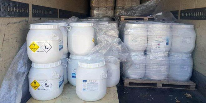 استلمت المؤسسة العامة لمياه الشرب في محافظة الحسكة كمية من مواد تعقيم المياه مقدمة من اللجنة الدولية للصليب الأحمر الدولي.