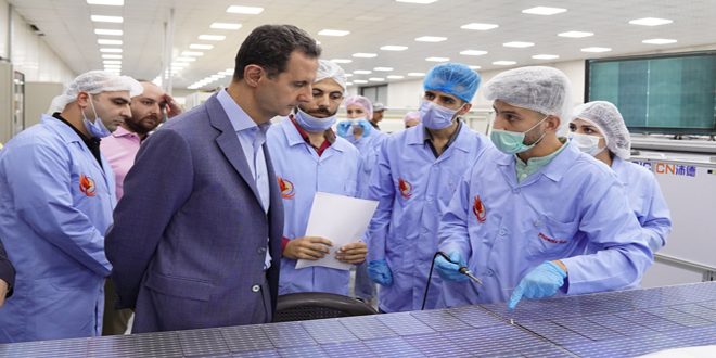 3- 8- 2023 الرئيس الأسد يزور المحطة الجديدة لتوليد الكهرباء في بانياس والشركة السورية لإنتاج اللواقط الكهروضوئية في اللاذقية.