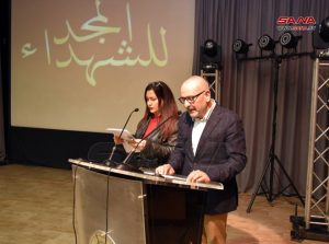 وتخلل حفل التكريم فيلم توثيقي بعنوان (القائد والأبناء) عرض مقتطفات من محطات لقاء السيد الرئيس بشار الأسد والسيدة أسماء الأسد بذوي وأبناء الشهداء.