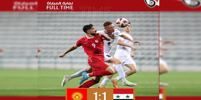 تعادل منتخب سورية الأول بكرة القدم مع منتخب قيرغزستان بهدف لمثله في المباراة الودية التي جمعتها اليوم على ملعب مكتوم بن راشد في الإمارات العربية المتحدة.