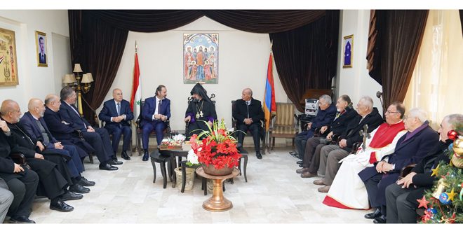 بتكليف من السيد الرئيس بشار الأسد زار أمين عام رئاسة الجمهورية منصور عزام اليوم المطران آرماش نالبنديان مطران الأرمن الأرثوذكس لأبرشية دمشق وتوابعها ونقل تهاني الرئيس الأسد بعيد ميلاد السيد المسيح رسول المحبة والسلام له ولأبناء الطائفة الكريمة وتمنياته لهم بالخير والتوفيق.