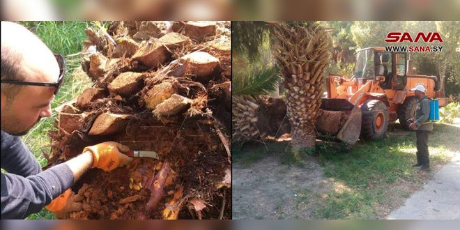 وأوضحت رئيسة الدائرة المهندسة رشا فرنسيس في تصريح لمراسلة سانا أن الجولات الميدانية مستمرة للقضاء على هذه الحشرة كونها عدو خفي يصعب اكتشافه في بداية الإصابة مشيرة إلى أنه تم تسجيل إصابات عديدة في حدائق ومناطق مختلفة بالمحافظة وتم إزالة 153 شجرة نخيل خلال العام الماضي تبين إصابتها بشدة وتقطيعها ونقلها للمطمر المخصص لها بعد رشها بالمبيد وحرقها لأن المكافحة لم تعط جدوى نظراً لاستفحال الإصابة.