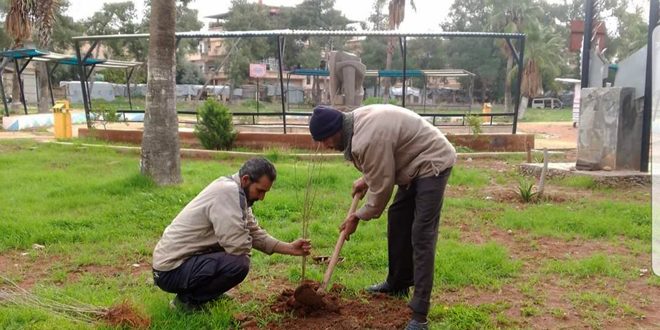 أنجزت مديرية الحدائق في مجلس مدينة درعا زراعة جزر ومنصفات طرقية ممتدة في أنحاء المدينة بأشجار الورود والزينة.