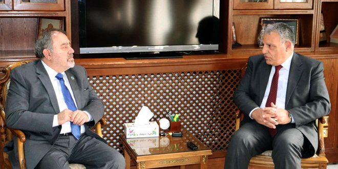 بحث وزير الزراعة والإصلاح الزراعي المهندس محمد حسان قطنا اليوم مع ممثل منظمة الأغذية والزراعة للأمم المتحدة “الفاو” بدمشق طوني العتل المراحل التي قطعها مشروع (منتج واحد) الخاص بالزيتون بين الجانبين وضرورة إطلاق مشروعات مماثلة تخص التغيرات المناخية.