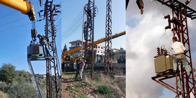 نفذت ورشات التشغيل التابعة للشركة العامة لكهرباء طرطوس أعمال استبدال وتركيب محولات كهربائية جديدة ذات استطاعات أكبر في بلدتي تعنيتا والشيخ سعد بمحافظة طرطوس.