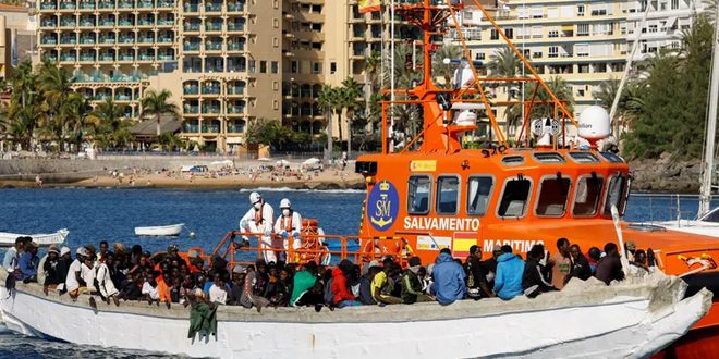 وبحسب وزارة الداخلية الإسبانية فإن “عدداً قياسياً بلغ 55618 مهاجراً وصلوا إلى إسبانيا بواسطة القوارب العام الماضي وهو ما يقرب من ضعف العدد في العام السابق وجاءت الغالبية العظمى منهم عبر طريق المحيط الأطلسي”.