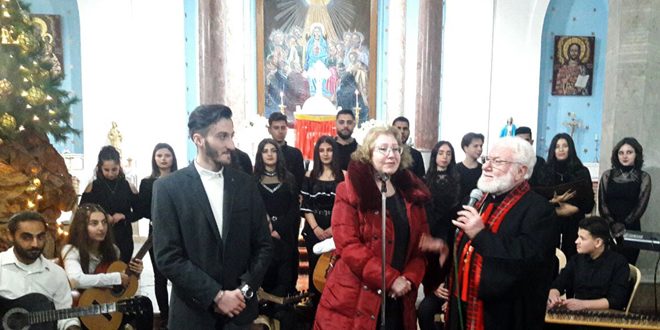 من جهته الأب ميشيل نعمان من مطرانية السريان الكاثوليك لفت إلى أننا نعيش الحزن والمعاناة لكننا أمام الألم لا نركع ومن جرح القلب نغني مع الشباب فسورية تاريخ وحضارة وعراقة وقدمت الكثير من التضحيات لكي تحيا ويحيا السوريون.