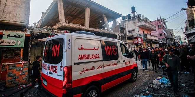 اعتبرت جمعية الهلال الأحمر الفلسطيني أن استهداف الاحتلال الإسرائيلي الممنهج للمرافق الطبية ومركبات الإسعاف والطواقم الطبية والجرحى والمرضى في قطاع غزة يشكل انتهاكات جسيمة للقانون الإنساني الدولي.
