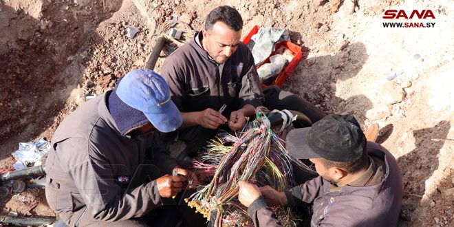 وبين مدير فرع الشركة السورية للاتصالات بدرعا المهندس أحمد الحريري في تصريح لمراسلة سانا أن الورشات أنهت مد ثلاثة كوابل نحاسية جديدة قرب مديرية التربية الجديدة باتجاه دوار الحمامة بسعة إجمالية بلغت 3600 خط بدلاً عن المسروقة.