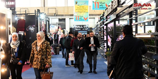 ويستمر المعرض الذي تقيمه غرف صناعة دمشق وريفها وصناعة حلب وتجارة دمشق وتجارة حلب ورابطة المصدرين السوريين للألبسة والنسيج حتى الـ 14 من الشهر الجاري، ويتضمن اختصاصات قطاع الصناعة النسيجية ومستلزماته من الألبسة الولادي والنسائي والرجالي واللانجري والموضة والأحذية والجلديات والإكسسوارات والأقمشة والخيوط وغيرها من مستلزمات الإنتاج إضافة إلى عدد من الشركات الخدمية كالمصارف وشركات الشحن وغيرها.