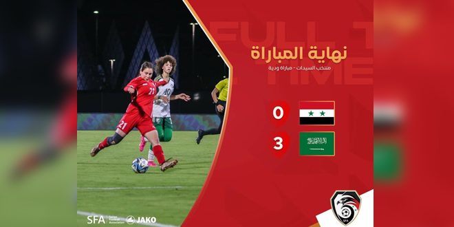 خسر منتخب سورية لكرة القدم للسيدات أمام نظيره السعودي بثلاثة أهداف دون رد، وذلك في اللقاء الودي الذي جمعهما اليوم في مدينة جدة السعودية.