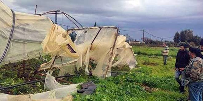 يذكر أن الأحوال الجوية السائدة ونتيجة التيارات الشديدة في محافظة طرطوس أدت أمس لأضرار بالزراعات المحمية طالت 20 بيتاً محمياً في سمريان والخرابة في منطقة سهل عكار.