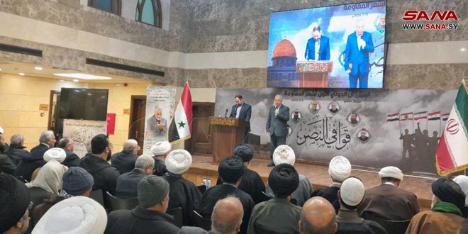 وقدم الشعراء صالح هواري من فلسطين، وزكي النوري والدكتور نبيل حلباوي وخضرة جمعة وشذا القاسم من سورية، والدكتور حيدر ياسين علي وحسن عقلة من العراق، والشاعر عادل يونس من لبنان، نصوصاً شعرية التزمت الشعر الموزون والفصيح، وتغنت بمحبة سورية والدفاع عن خيار المقاومة، كما أضاءت على مناقب الشهيد قاسم سليماني ورفاقه، مؤكدين ضرورة مواجهة غطرسة الكيان الصهيوني ودعم محور المقاومة.