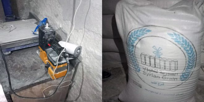 ضبط عناصر مديرية التجارة الداخلية وحماية المستهلك بحلب بالتعاون مع قوى الأمن الداخلي مستودعاً بمنطقة البياضة يحتوي كمية 6350 كيلوغراماً من الدقيق التمويني المهرب، والتصرف به بطريقة غير مشروعة.