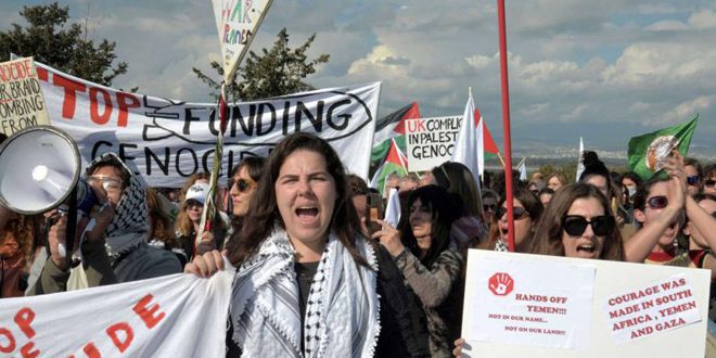 تظاهر المئات من نشطاء السلام قرب قاعدة أكروتيري العسكرية البريطانية في قبرص، للمطالبة بإغلاقها، لدورها في تأجيج الحرب والنزاعات الإقليمية في المنطقة، وخاصة في غزة واليمن.