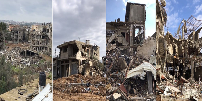 ويضيف: جميع أحياء بيت حانون سويت بالأرض، وتحولت المنازل إلى كومة من الركام، لا أحد في المدينة يعرف حدود ومكان منزله ولا الشوارع التي تفصل بين الأحياء.. حتى المدارس والمستشفيات دمرت.. ولم يتبق لأهالي المدينة المنكوبة الذين يزيد عددهم على 60 ألفاً أي منزل يؤويهم، الاحتلال دمرها وجرفها بالكامل.