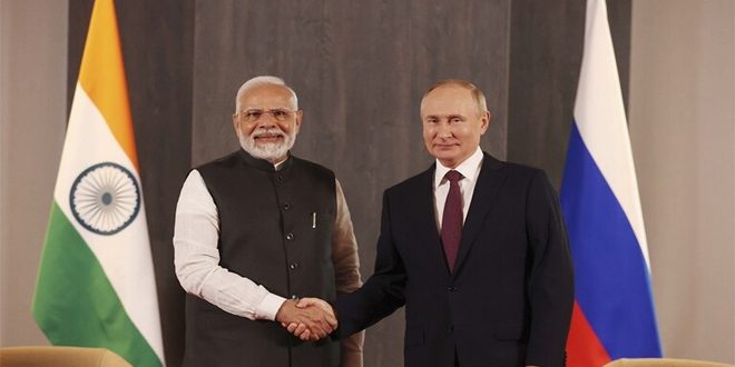أكد الرئيس الروسي فلاديمير بوتين ورئيس الوزراء الهندي ناريندرا مودي خلال اتصال هاتفي اليوم التزامهما بتعزيز الشراكة الإستراتيجية والاقتصادية بينهما.