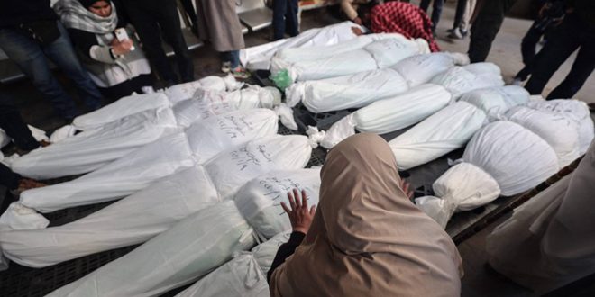 وقالت وزارة الصحة الفلسطينية في بيان اليوم: إن الاحتلال ارتكب خلال الساعات الـ 24 الماضية 15 مجزرة في القطاع، راح ضحيتها 158 شهيداً، و320 جريحاً، ما يرفع عدد الضحايا منذ بدء الاحتلال بعدوانه على القطاع في السابع من تشرين الأول الماضي إلى 24285 شهيداً و61154 جريحاً، مشيرة إلى أنه ما زال عدد من الضحايا تحت الركام وفي الطرقات، حيث لا تستطيع طواقم الإسعاف والدفاع المدني الوصول إليهم.