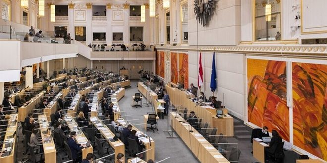 احتج ناشطون داخل البرلمان النمساوي أثناء احتفال بمناسبة الذكرى الخامسة والسبعين للإعلان العالمي لحقوق الإنسان، دعماً لفلسطين وتنديداً بالعدوان الإسرائيلي على قطاع غزة.