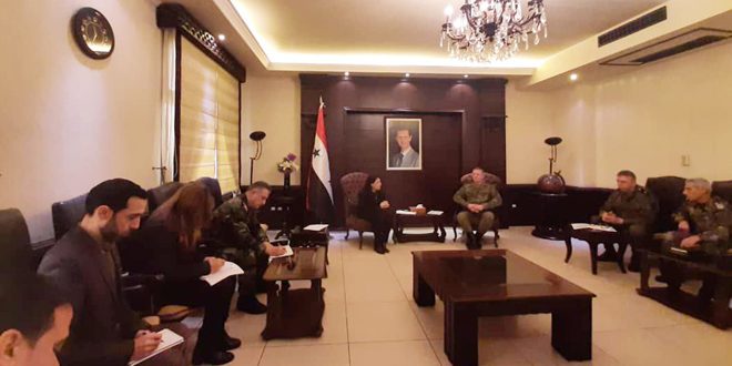 بحثت وزيرة الإدارة المحلية والبيئة المهندسة لمياء شكور مع اللواء سيرغي غاشكوف نائب قائد القوات الروسية لشؤون المصالحة واللواء فاديم كوليت رئيس المركز الروسي للمصالحة في دمشق والمنطقة الجنوبية والوفد المرافق التعاون المشترك بين الهيئتين التنسيقيتين السورية –الروسية لعودة المهجرين السوريين وتأمين الظروف الملائمة لتسهيل عودتهم إلى وطنهم.