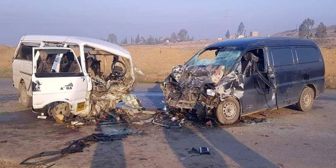 توفي خمسة أشخاص وأصيب 16 آخرون بجروح جراء تصادم سيارتين على طريق الكسوة الحرجلة بريف دمشق صباح اليوم، نتيجة الضباب الكثيف.