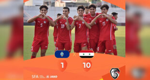 وضمت تشكيلة منتخبنا في المباراة، أحمد مدنية وثائر كروما وأيهم أوسو ومؤيد العجان وعبد الرحمن ويس وخليل الياس وايزاكيل العم ومحمود الأسود وعمار رمضان وإبراهيم هيسيار وبابلو صباغ.