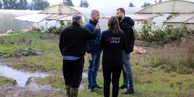 واصل فريق مشروع جريح الوطن جولاته الميدانية لتفقد أحوال الجرحى المتضررين جرّاء السيول في محافظتي حمص وطرطوس والاطمئنان على سلامتهم ورصد احتياجاتهم وإحصاء الخسائر التي لحقت بأراضيهم ومحاصيلهم الزراعية ومشاريعهم الإنتاجية بالتعاون مع الجهات المعنية.