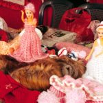 أدوات بسيطة تجمع بين السنارة والسنارتين وماكينة الخياطة اليدوية القديمة تمتلكها هيام وتطوعها لإنتاج مشغولات أهمها الشراشف والوسائد وألبسة الأطفال والإكسسوارات.
