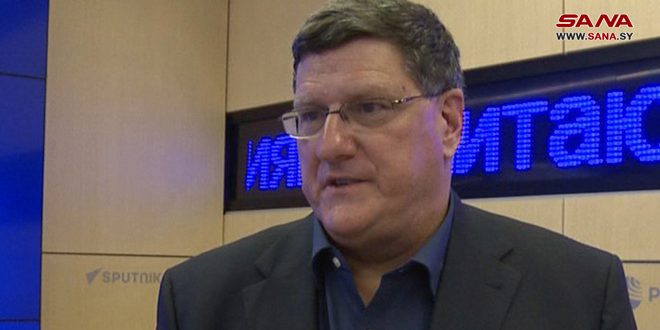 وقال ريتر في مقابلة مع مراسل سانا في موسكو: “إن القوات الأمريكية في سورية تسعى لتحقيق أهداف لم يحددها الكونغرس الأمريكي بوضوح، مشيراً إلى أن تواجد القوات الروسية في سورية قانوني ويتفق مع القانون الدولي لأنه جاء بطلب من الحكومة السورية، بينما لم يتم توجيه طلب مماثل للولايات المتحدة”.