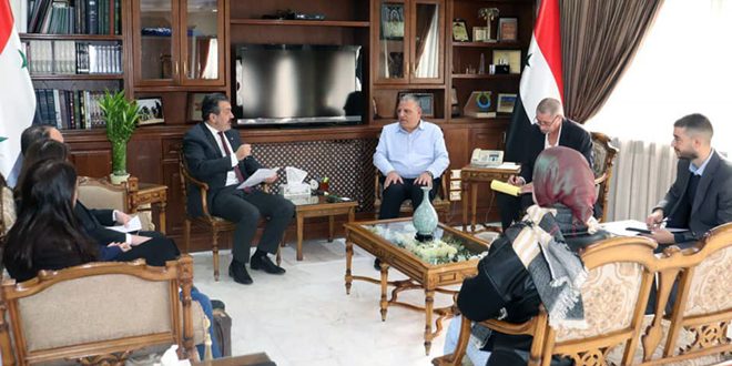 بحث وزير الزراعة والإصلاح الزراعي المهندس محمد حسان قطنا اليوم مع رئيس بعثة اللجنة الدولية للصليب الأحمر بدمشق ستيفان ساكاليان التعاون القائم والمستقبلي بين الوزارة والبعثة، وأولويات العمل خلال العام الجاري.