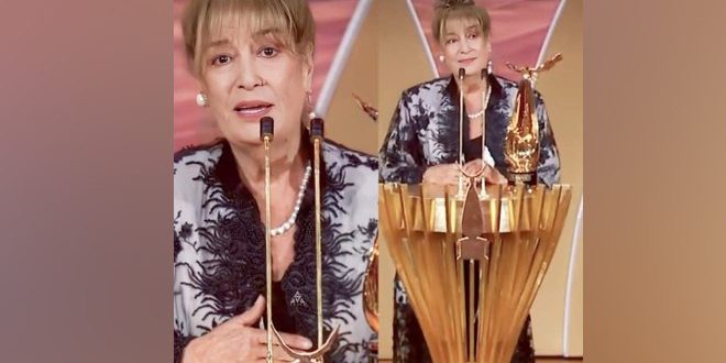وأعربت الفنانة منى واصف خلال تسلمها الجائزة في الحفل الذي أقيم أمس بحضور نجوم عرب وعالميين عن سعادتها بذلك قائلة: “أنا سعيدة بأي شيء قدمته حتى لو كانت ابتسامة على وجه البعض، أو مسحت دمعة عن وجه امرأة حزينة، أو أمسكت بيد طفل حتى يتعلم”.