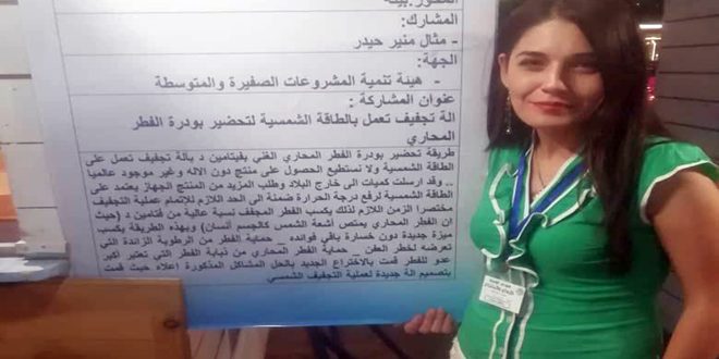 وشاركت حيدر في معرض الباسل للإبداع والاختراع بدورته الـ 21 العام الماضي، وحصلت على الجائزة الثانية عن مشاريع الفردية في محور البيئة.