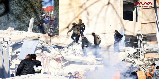 وقال الاتحاد في بيان له تلقت سانا نسخة منه: “بكثير من مشاعر الغضب والاستنكار والشجب تلقينا نبأ اقتراف الكيان الصهيوني جريمة جديدة تضاف إلى جرائمه السابقة بحق الجمهورية العربية السورية باستهدافه بناءً سكنياً، وذهب ضحية هذا العدوان الغاشم على السيادة السورية عدد من الشهداء من المدنيين”.