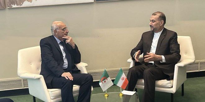 وشدد عبد اللهيان خلال لقائه وزير خارجية الجزائر أحمد عطاف في نيويورك على ضرورة مواجهة محاولات التهجير القسري للفلسطينيين من قطاع غزة.