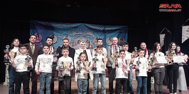 وخلال حفل التكريم الذي أقيم على مسرح نقابة الفنانين بمدينة حلب، أدى الأطفال المشاركون من الجمعية السورية لعلاج سرطان الأطفال ورعايتهم، ومركز الحساب الذهني بحلب، وجمعية الرجاء، فقرات فنية ومسابقات للحساب الذهني وألعاب الروبك.