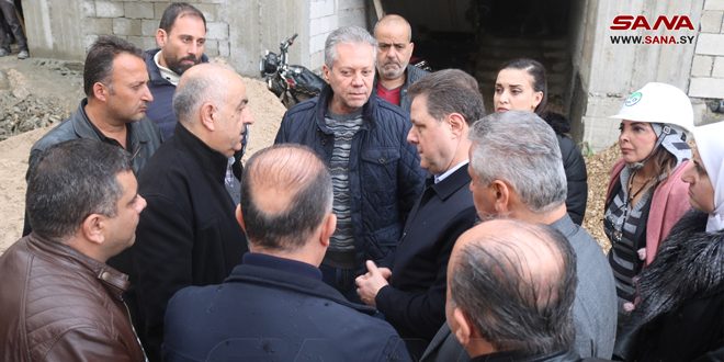 وخلال الجولة التي رافقه فيها مديرا المؤسسة العامة للإسكان راما الظاهر والشركة العامة للمشاريع المائية المهندس مهند معروف، عرض مديرو الشركات المنفذة مراحل التنفيذ ونسب الإنجاز والمواعيد المحددة للتسليم النهائي.