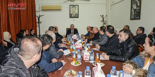حضر الاجتماع مدير عام المؤسسة السورية للتجارة زياد هزاع وعضو المكتب التنفيذي لقطاع التجارة والصناعة الدكتور معلا إبراهيم والمعنيون في قطاع التجارة الداخلية بالمحافظة.