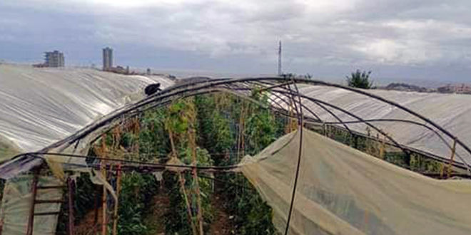 وأوضح رئيس صندوق الجفاف والكوارث الطبيعية في مديرية زراعة طرطوس الدكتور حيدر شاهين في تصريح لمراسل سانا أنه نتيجة التيارات الهوائية الشديدة ضرب تنين بحري قرى يحمور وبني نعيم والبصيصة وأبوعفصة والهيشة وألحق أضراراً جسيمة في الزراعات المحمية المزروعة بمحاصيل البندورة والباذنجان والفليفلة والخيار إضافة إلى تضرر مشتل خاص لزراعة الورد الجوري.