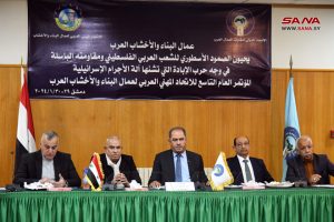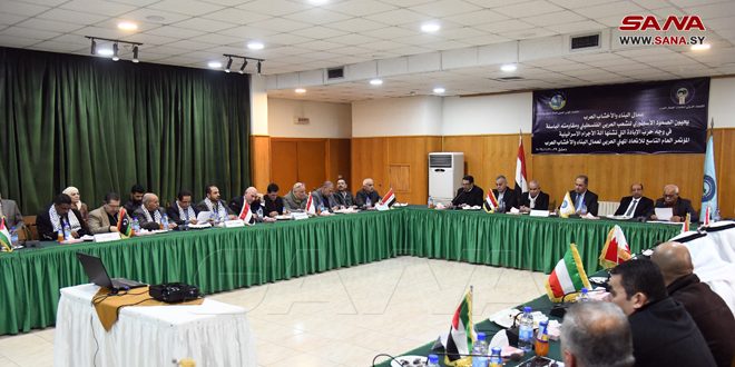 بمشاركة وفود من 12 دولة عربية من النقابات المهنية لعمال البناء والأخشاب استضافت دمشق اليوم أعمال المؤتمر العام التاسع للاتحاد المهني العربي لنقابات العاملين في البناء والأخشاب وصنع مواد البناء، في المعهد العربي للدراسات العمالية.