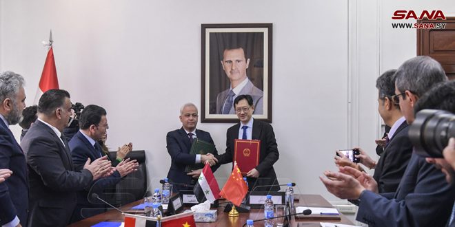 وقع وزير الاتصالات والتقانة المهندس إياد الخطيب مع السفير الصيني بدمشق شي هونغوي شهادة التسليم والاستلام للمساعدات الصينية المتضمنة تجهيزات لقطاع الاتصالات.