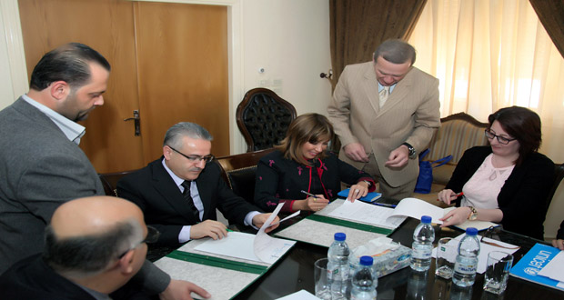 حضر توقيع الاتفاقية معاونا وزير الموارد المائية أسامة الأخرس وعبد الله درويش والمدير العام للهيئة العامة للموارد المائية الدكتور سامر أحمد ومدير المؤسسة العامة لمياه الشرب والصرف الصحي بدمشق المهندس حسام الدين حريدين وعدد من المعنيين في الوزارة والوفد المرافق للممثل المقيم.