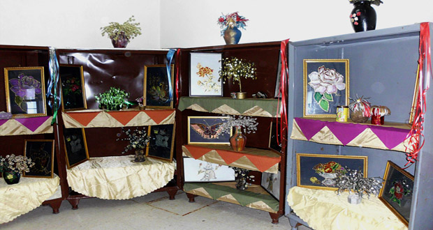 وضم المعرض الذي يستمر حتى السابع من الشهر الجاري نحو 50 لوحة فنية مرسومة بالألوان الخشبية والزيتية والمائية و20 لوحة مرسومة على الزجاج بالألوان الزيتية إضافة لأكثر من 40 عملاً يدوياً شملت الحفر على النحاس والأشغال المصنوعة بالسيراميك والفسيفساء والخرز والبريق والصوف والتوالف البيئية والمطرزات .