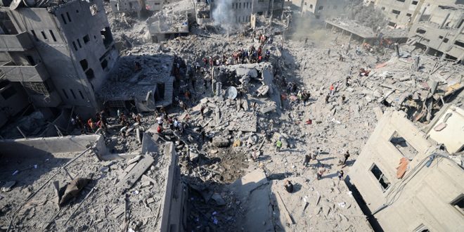 “مجازر لا تتوقف، وتدمير شامل للأحياء السكنية والبنية التحتية في مخيمات وسط قطاع غزة.. لا أحد يستطيع الحركة لانتشال جثامين الشهداء وإنقاذ مئات الجرحى.. الآلاف معظمهم نساء وأطفال تحاصرهم دبابات الاحتلال”.. هكذا يصف يوسف أبوعريبان المشهد الدامي في مخيمات البريج والمغازي والنصيرات وسط القطاع، جراء العدوان الإسرائيلي المتواصل لليوم الـ 116.