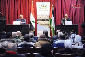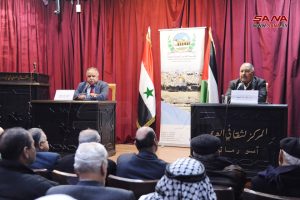 نظمت مؤسسة القدس الدولية_سورية، واللجنة الشعبية العربية السورية لدعم الشعب الفلسطيني، وفصائل المقاومة الفلسطينية بمناسبة يوم القدس الثقافي ندوة في المركز الثقافي بأبو رمانة بدمشق بعنوان (طوفان الأقصى ونتائجه وتداعياته على القضية الفلسطينية والمنطقة والعالم).