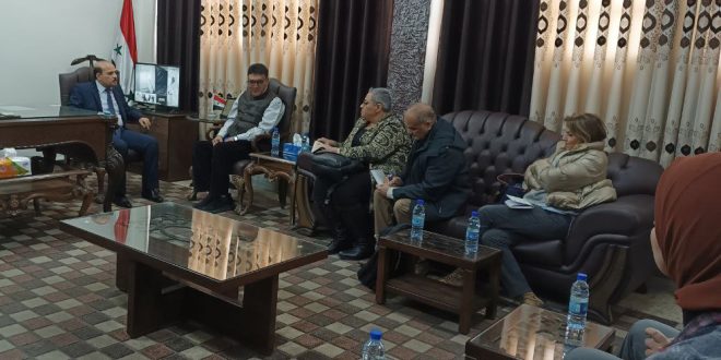 بحث محافظ الرقة عبد الرزاق خليفة مع الممثل المقيم لبرنامج الأمم المتحدة الإنمائي في سورية سوديبتو موكرجي والوفد المرافق له التعاون القائم بين الجانبين وسبل تطويره.