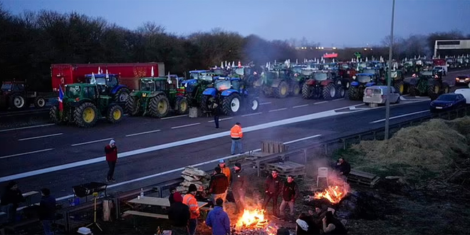 وقام المزارعون بإغلاق العديد من الطرق السريعة المؤدية إلى باريس بجراراتهم، ما تسبب بأزمة اجتماعية جديدة بعد عام من الإصلاحات المثيرة للجدل في نظام التقاعد.