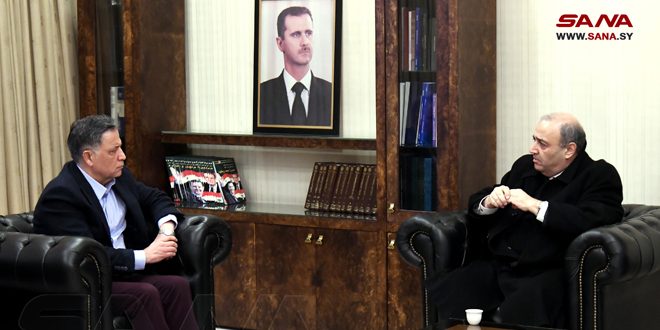 بحث وزير التربية الدكتور محمد عامر المارديني اليوم مع الممثل المقيم لشبكة الآغا خان للتنمية في سورية غطفان عجوب والوفد المرافق مجالات تعزيز التعاون المشترك بين الوزارة والشبكة في المجال التربوي.