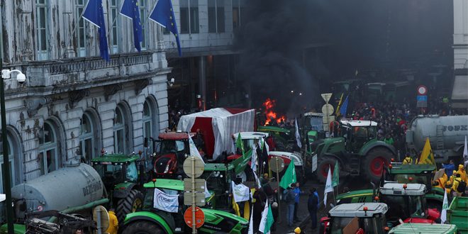 تجمّع آلاف المزارعين في العاصمة البلجيكية بروكسل احتجاجاً على تخصيص 50 مليار يورو إضافية لأوكرانيا، في ظل ارتفاع أسعار المحروقات والأسمدة وكلفة الإنتاج بعد العقوبات ضد روسيا، وتقليص الدعم الحكومي لهم.