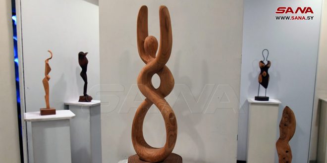 بدورها النحاتة سيماف أوضحت أن فكرة أعمالها تمحورت حول الكمال والنقص ومعالجة فكرة تتجسد في سؤال كيف نعالج نقصنا ونتعامل مع ضعفنا لنسعى للكمال البشري، مستخدمة خامة الخشب التي تعتبرها مطواعة وتساعدها على إظهار المرأة بطريقة دافئة ولينة.